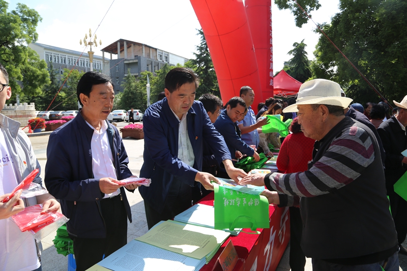 (局領導向現(xiàn)場群眾發(fā)放生態(tài)環(huán)境保護宣傳資料)